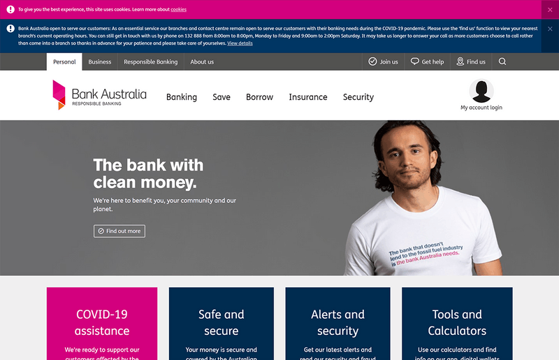 For this report, our test site will be the homepage of Bank Australia, which is a socially-aware bank based in Victoria, Australia.